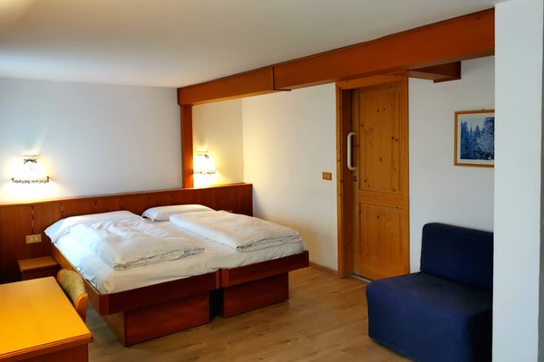 Arredata con semplicità in stile montano, offre un confort sobrio ed essenziale, selezionati prodotti di cortesia in bagno, essenze profumate naturali nei diffusori, accesso all’area fitness, sauna e bagno turco, incluso nella tariffa di soggiorno. (durante l’allerta COVID, la prenotazione è obbligatoria e il singolo ingresso costa 15 euro per un’ora)