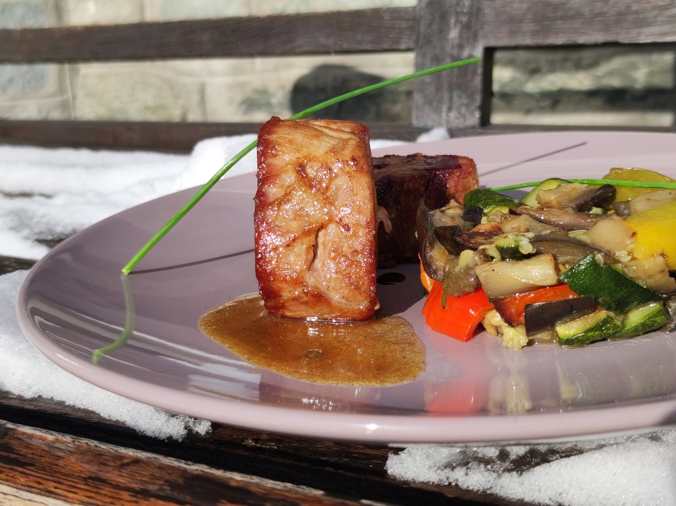 Tagliata di petto d’anatra* ai profumi di montagna e bergamotto (10) € 22
